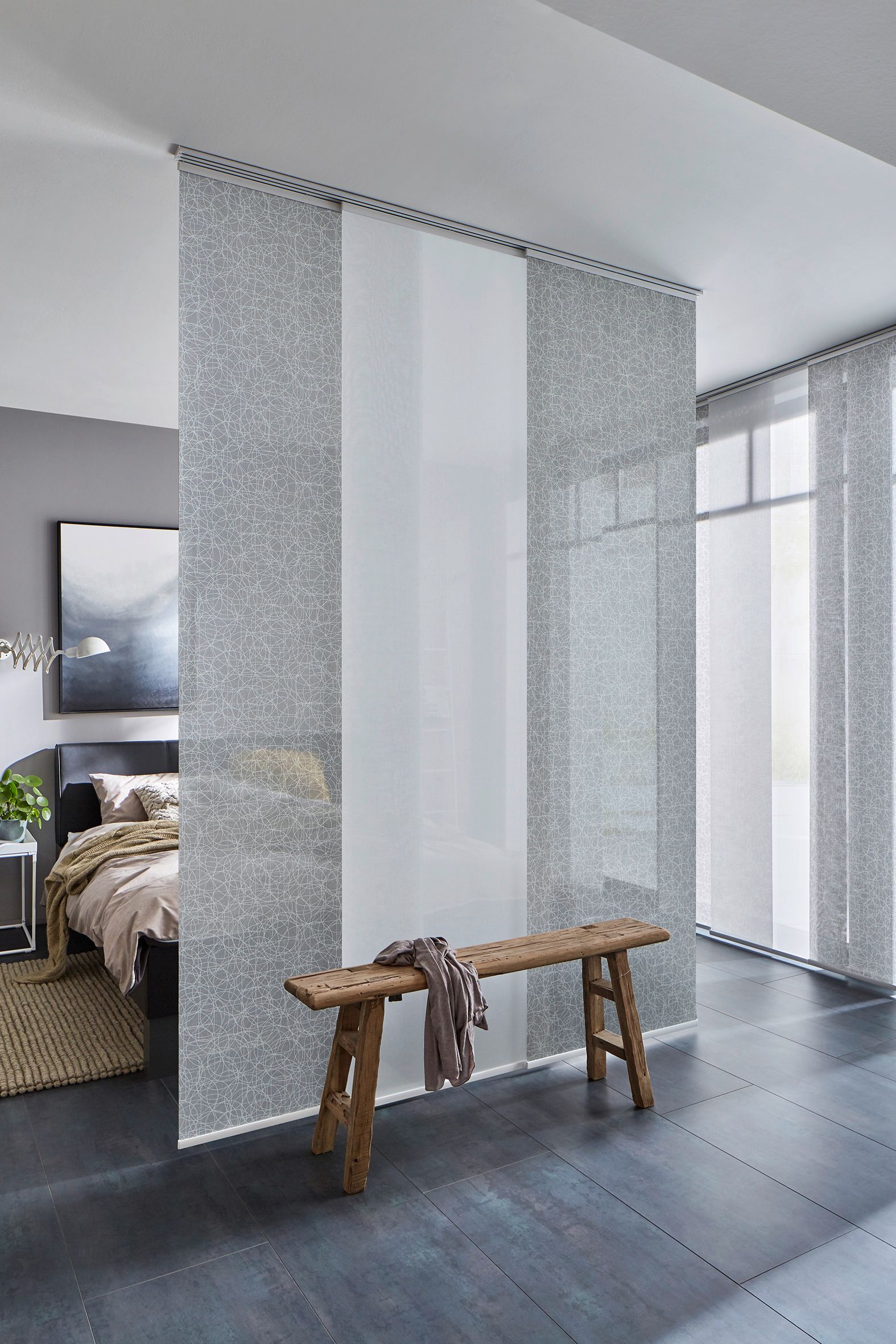- Flächenvorhänge – ideal für große Glasflächen und moderne Raumkonzepte