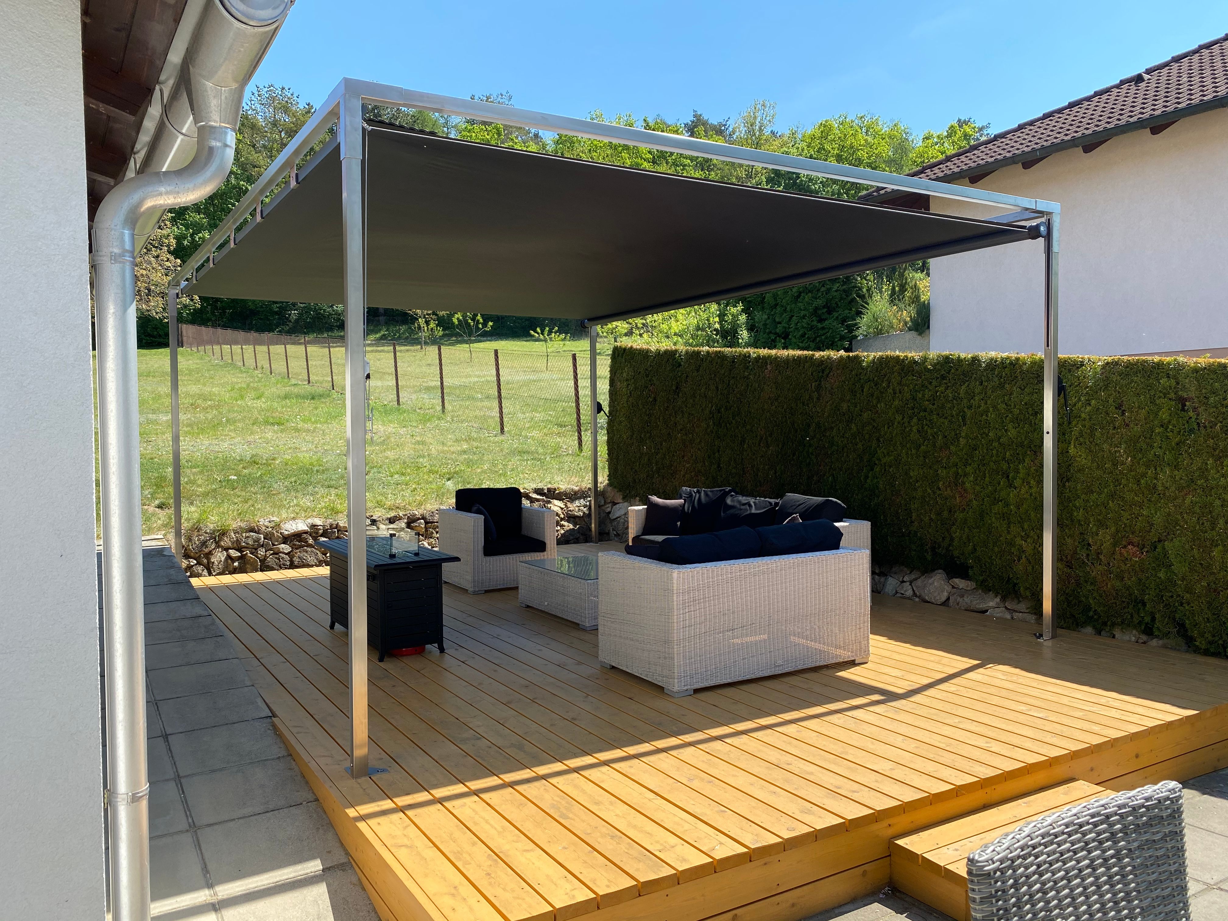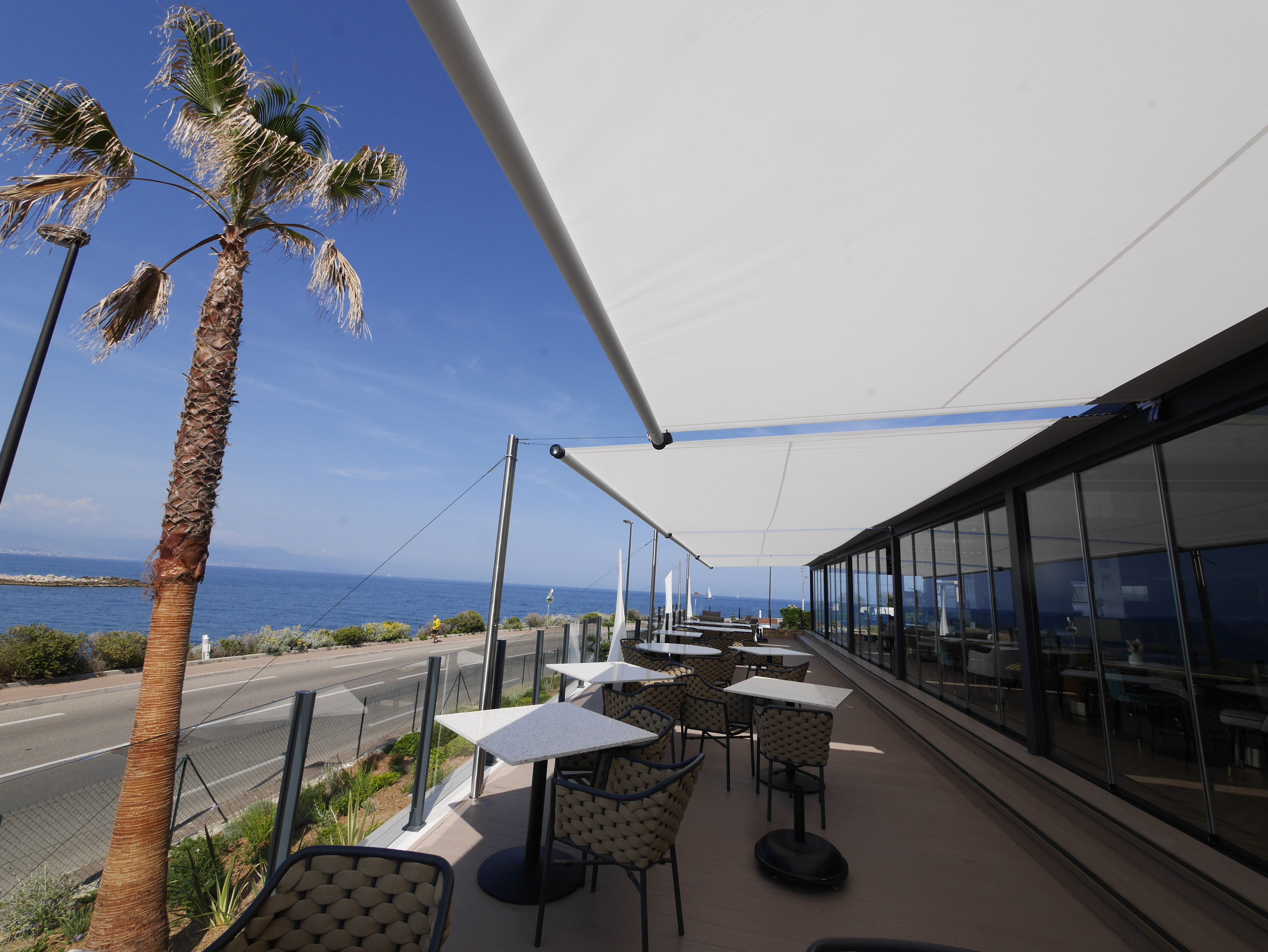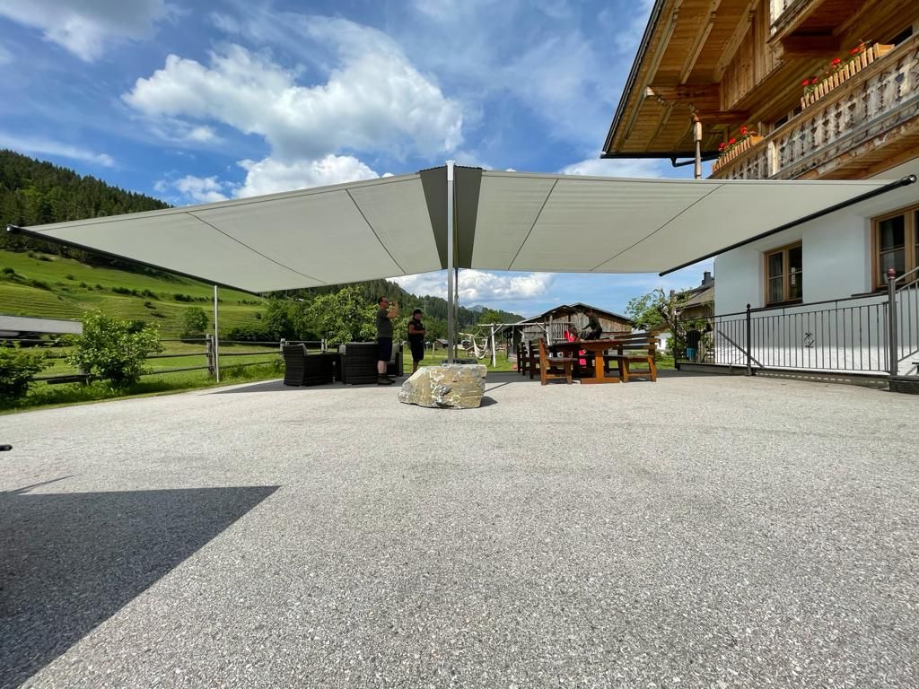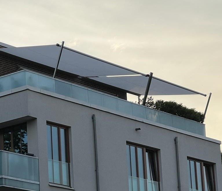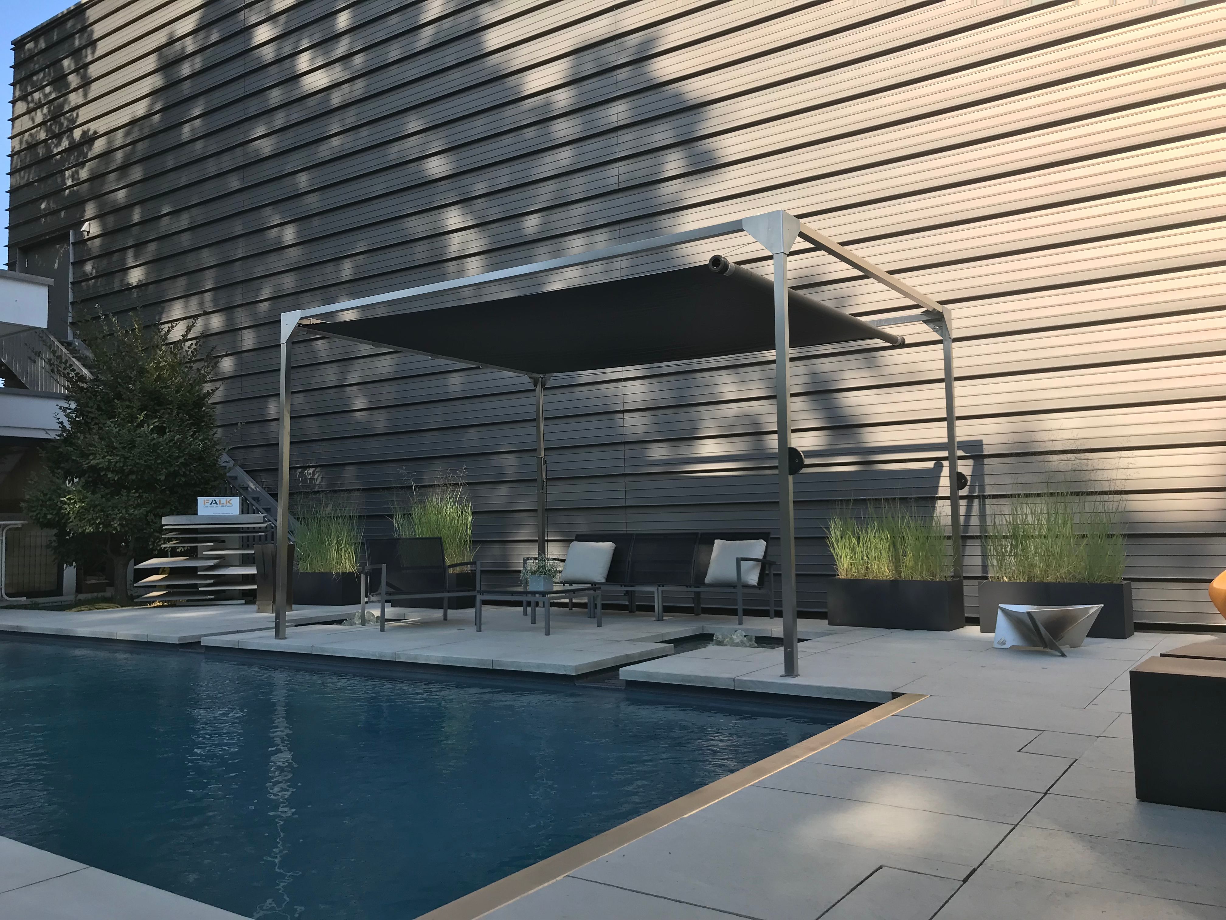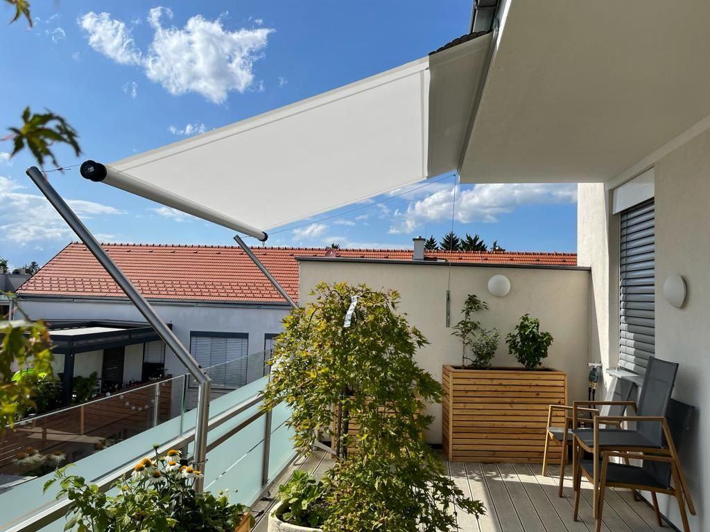 SHADE vereint die Vorteile eines fest installierten Markisensystems mit der luftigen Leichtigkeit eines filigranen Sonnensegels und lässt sich dank des modularen Aufbaus für nahezu jede Fläche einsetzen – vom Balkon über die Terrasse bis hin zu anderen Schattenoasen.