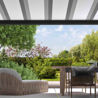 Mit einer Markise oder einem Terrassendach von Erhardt sind Sie ganz natürlich auf der sicheren Seite. Genießen Sie auf Ihrer Terrasse bei herrlichem Sonnenschein geprüften Sonnenschutz und vieles mehr.